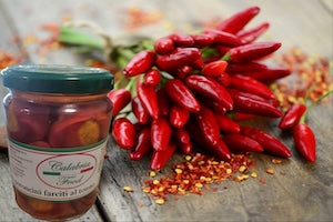 I peperoncini freschi sono svuotati, privati dei semi e vengono farciti con tonno. In seguito sono riposti nei vasi che successivamente vengono riempiti di olio extravergine